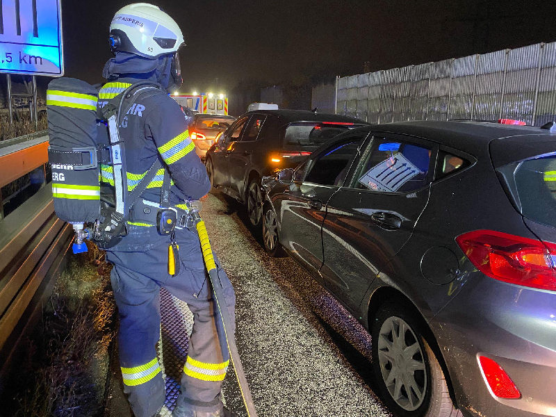 Fahrzeugaufgebot   Kommandowagen (KdoW)  Einsatzleitwagen (ELW 1)  Hilfeleistungslöschgruppenfahrzeug 1 (HLF 1)  Gerätewagen Transport (GW-T)