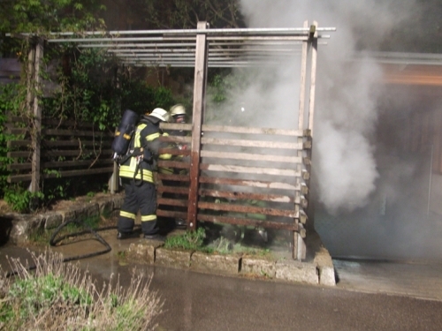 Bereits zum zweiten Mal in dieser Nacht wurde die Feuerwehr Asperg von der Leitstelle Ludwigsburg alarmiert. Dieses Mal wurde ein brennender Müllcontainer im Wassily-Kandinsky-Weg über Notruf 112 gemeldet. Dies bestätigte sich auch beim Eintreffen der ersten Einsatzkräfte an der Einsatzstelle. Ein 1100 Liter Müllcontainer stand unter einem Unterstand im Vollbrand. Das Feuer wurde mittels eines C-Rohrs von einem Trupp unter Atemschutz abgelöscht. Auch hier konnte durch das schnelle Eingreifen der Feuerwehr Schlimmeres verhindert werden. Die Polizei leitete Ermittlungen zum Brandhergang ein.