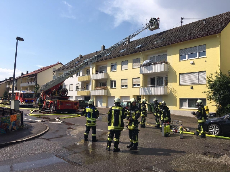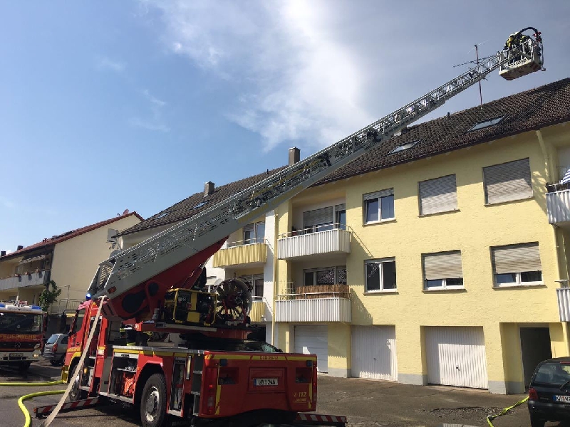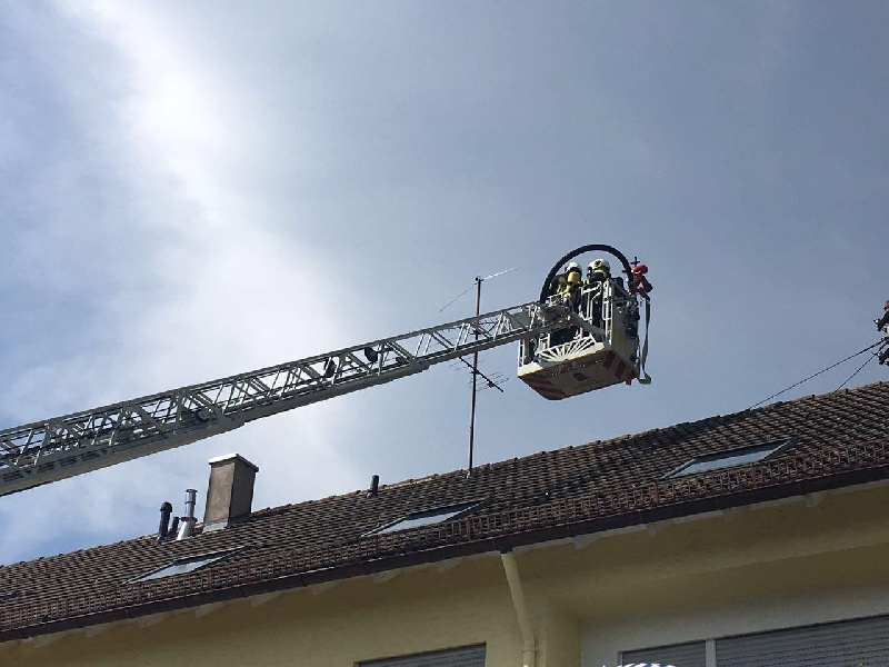 Schwelbrand nach Blitzeinschlag in Dachstuhl eines Mehrfamilienhauses.