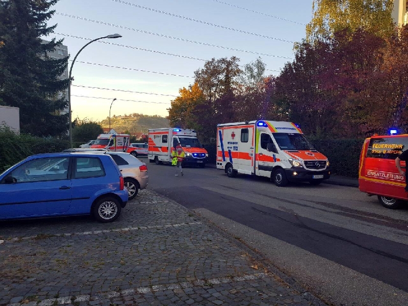 Beim Eintreffen der Einsatzkräfte starke Rauchentwicklung an einem Hochhaus in der Filsstraße. Nach der Erkundung stellte sich heraus, dass eine Hecke, ein Nadelbaum sowie Gestrüpp unter dem Balkon des 1.Obergeschosses im Außenbereich des Hochhauses brannten. Es kamen zwei C-Rohre zur Brandbekämpfung zum Einsatz. Aufgrund der starken Rauchentwicklung, die in mehrere Wohnungen des Hochhauses gezogen ist, mussten über 30 Bewohner durch den Rettungsdienst auf eine mögliche Rauchgasintoxikation gesichtet werden.