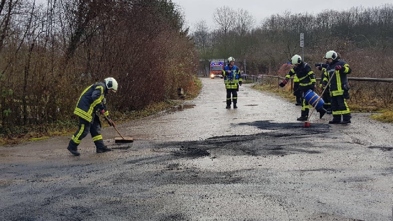 Illegale Altölentsorgung im Bereich Altachstraße. Verunreinigung auf der Straße, größe Bereiche eines Feldweges und Teile des Erdreiches. Eine Verunreinigung des in unmittelbarer Nähe befindlichen Bach "Altach" konnte verhindert werden. Das Öl wurde mittels Bindemittel aufgenommen und der Einlauf zum Bach "Altach" gesichert.