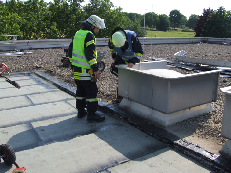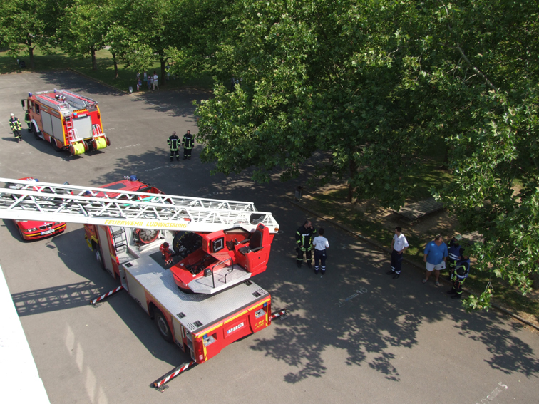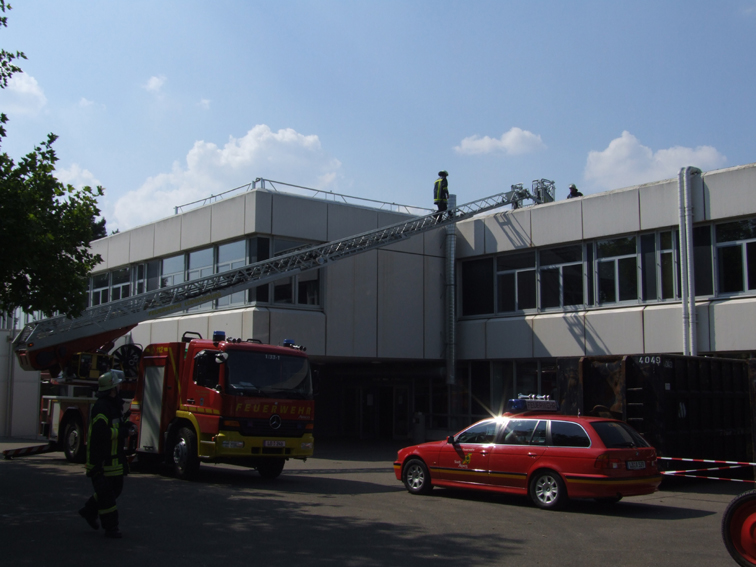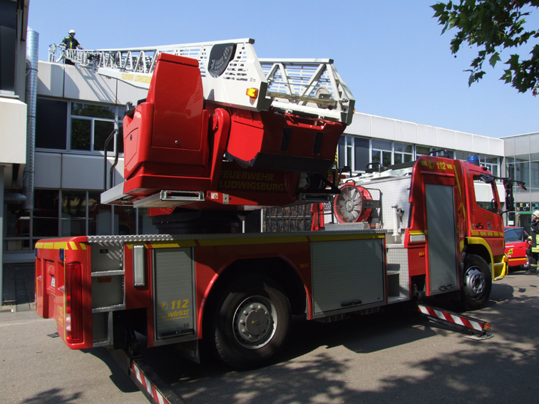 Am Freitagmittag wurde die Feuerwehr nach Auslösung der automatischen Brandmeldeanlage zum Gymnasium in den Lyonel-Feininger-Weg alarmiert. Beim Eintreffen der ersten Einsatzkräfte an der Einsatzstelle war Brandgeruch im Bereich des ausgelösten Rauchmelders warnehmbar. Da auf dem Dach Schweißarbeiten mit Dachpappe im Gange waren, wurde die aus Ludwigsburg gemäß Alarmplan mitalarmierte Drehleiter in Stellung gebracht. Bei einer weiteren Erkundung auf dem Dach stellte sich heraus, dass es zu einem Schwelbrand in Folge der Dachabdichtungsarbeiten gekommen war. Der Schwelbrand wurde bis zum Eintreffen der Feuerwehr bereits von Arbeitern gelöscht. Die betroffene Dachfläche wurde abschließend von der Feuerwehr mittels Wärmebildkamera auf eventuelle Glutnester kontrolliert. Es wurde nichts festgestellt. Die Feuerwehr musste somit nicht weiter tätig werden. Die Polizei leitete Ermittlungen ein. Ebenfalls vor Ort war der Rettungsdienst mit einem Fahrzeug.