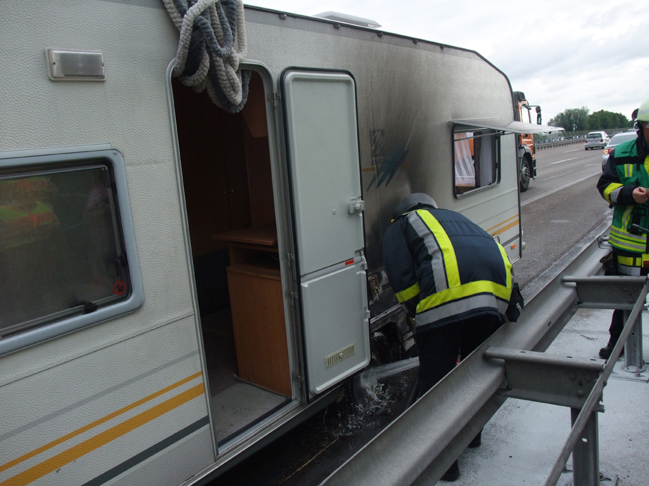 Am Donnerstagmorgen wurde die Feuerwehr Asperg zusammen mit der Feuerwehr Ludwigsburg auf die Bundesautobahn A81 zur Anschluss-Stelle LB Nord in Fahrtrichtung Heilbronn mit dem Einsatzstichwort PKW-Brand alarmiert. Beim Eintreffen der Einsatzkräfte an der Einsatzstelle stellte sich heraus, dass ein Reifen eines Wohnwagens brannte. Das Feuer wurde mittels Schnellangriff „Wasser“ von der Feuerwehr gelöscht. Ein Übergreifen der Flammen auf den Wohnwagen konnte verhindert werden. Die Polizei leitete Ermittlungen zum Brandhergang ein.