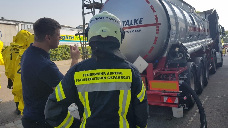 Beim Betanken eines Salzsäuretanks kam es aufgrund von Undichtigkeiten am Tankdeckel zu einer Dampfentwicklung. Da nicht ausgeschlossen werden konnte ob Medium ausgelaufen war, wurde der Betroffene Raum von einem Trupp unter Chemikalienschutzanzug kontrolliert. Ein Stoffaustritt wurde nicht lokalisiert. Die betroffenen Räumlichkeiten wurden belüftet. Ein Einsatz der Feuerwehr war nicht weiter erforderlich. Eine Fachfirma zur Instandsetzung des Tanks wurde verständigt.
