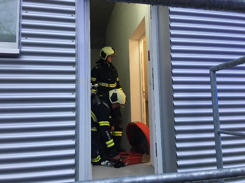 Täuschungsalarm durch Schleifarbeiten an einer Wand.