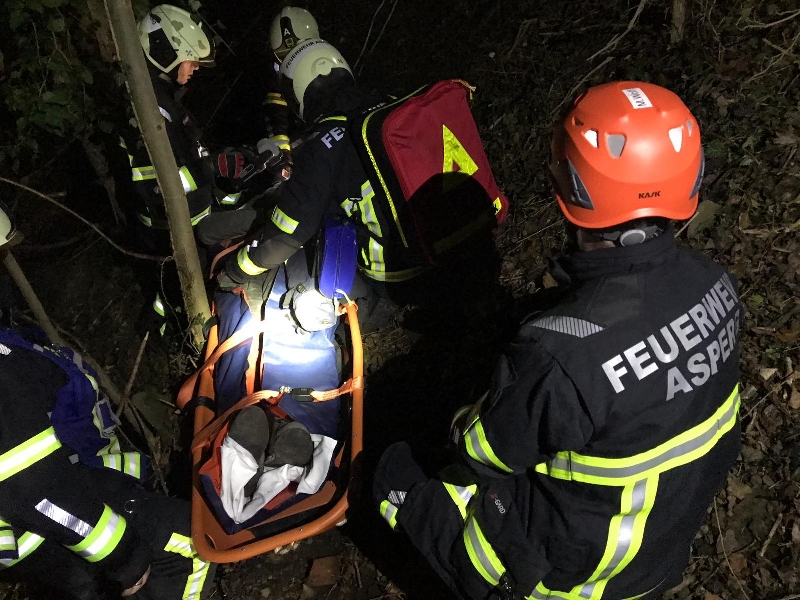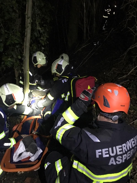 Die Feuerwehr Asperg wurde in der Nacht von Freitag auf Samstag zu einer Menschenrettung an den Hohenasperg alarmiert. Eine Person war von der Kante eines Parkplatzes am dicht bewaldeten Nordhang des Hohenaspergs rund 40 Meter in die Tiefe abgestürzt. Die Feuerwehr leitete umgehend eine umfangreiche Menschenrettung ein. Die abgestürzte Person konnte in steiler Lage in dem sehr unwegsamen Nordhang lokalisiert werden. Es erfolgte umgehend eine medizinische Erstversorgung an der Unglücksstelle. Zur Rettung der Person mussten teilweise Sträucher und Bäume durch die Einsatzkräfte der Feuerwehr entfernt werden, um eine sicher Rettungsaktion gewährleisten zu können. Die Einsatzstelle wurde zudem großflächig ausgeleuchtet. Die Rettung erfolgte mittels Schleifkorbtrage und Vakuummatratze. Die notwendigen Sicherungsmaßnahmen während der Rettung wurden von der Feuerwehr mittels verschiedener Absturzsicherungskomponenten durchgeführt. Die verunglückte Person konnte nach der aufwendigen Rettungsaktion dem Rettungsdienst übergeben werden und wurde in ein Krankenhaus eingeliefert.