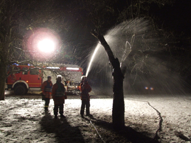Die Einsatzkräfte der Feuerwehr Asperg waren kaum von der Einsatzstelle in der Paul-Klee-Straße eingerückt, als sie erneut alarmiert wurden. Nur ca. 300 Meter vom ersten brennenden Baum entfernt, brannte erneut ein Baum. Auch hier kam zur Brandbekämpfung ein C-Rohr zum Einsatz. Die Polizei leitete umgehend Ermittlungen ein, da Brandstiftung nicht ausgeschlossen werden konnte.