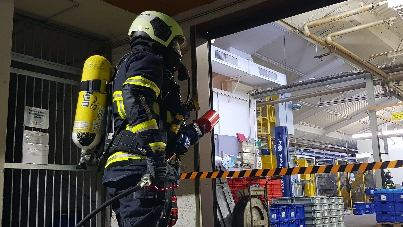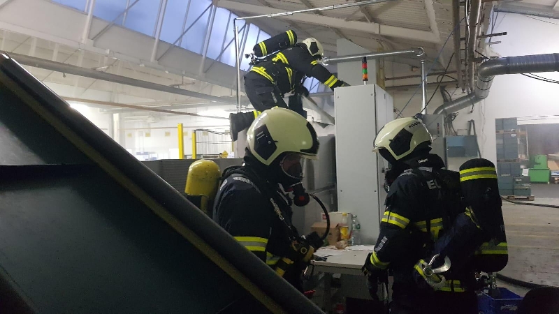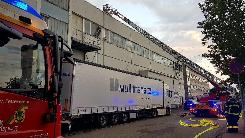 Brannte Maschine in Produktionshalle.
