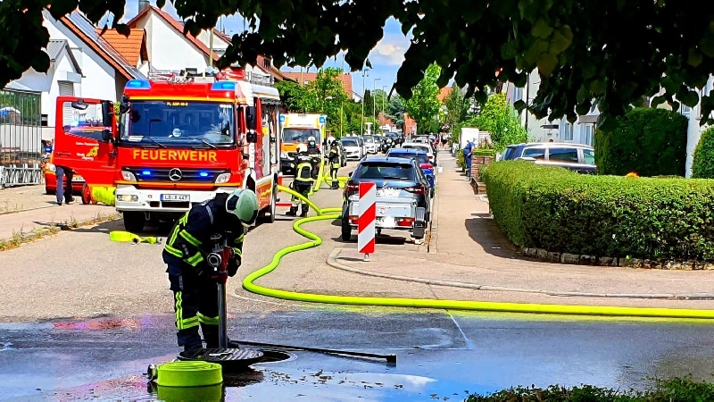 Fahrzeugaufgebot   Kommandowagen (KdoW)  Einsatzleitwagen (ELW 1)  Hilfeleistungslöschgruppenfahrzeug 1 (HLF 1)  Hilfeleistungslöschgruppenfahrzeug 2 (HLF 2)  Hilfeleistungslöschgruppenfahrzeug 3 (HLF 3)  Gerätewagen Gefahrgut (GW-G)