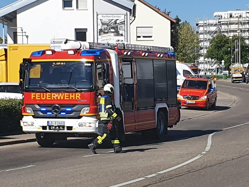 Fahrzeugaufgebot   Kommandowagen (KdoW)  Einsatzleitwagen (ELW 1)  Hilfeleistungslöschgruppenfahrzeug 2 (HLF 2)  Hilfeleistungslöschgruppenfahrzeug 3 (HLF 3)  Gerätewagen Gefahrgut (GW-G)  Anhänger mit Sonderlöschmittel  Gerätewagen Logistik (GW-L 1) (a.D.)