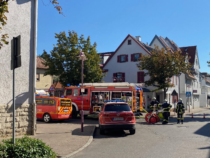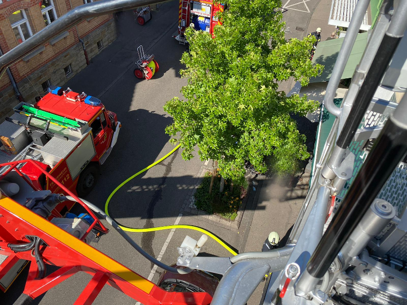 Fahrzeugaufgebot   Einsatzleitwagen (ELW 1)  Hilfeleistungslöschgruppenfahrzeug 2 (HLF 2)  Hilfeleistungslöschgruppenfahrzeug 3 (HLF 3)  Drehleiter (DLK 23/12)  Mannschaftstransportwagen 2 (MTW)