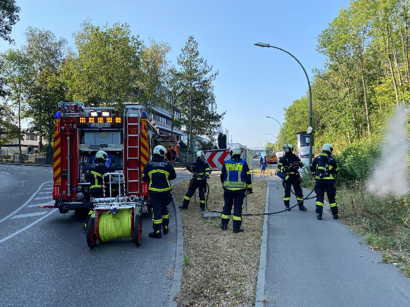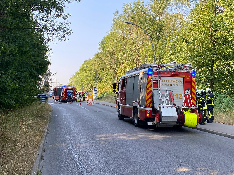 Fahrzeugaufgebot   Kommandowagen (KdoW)  Einsatzleitwagen (ELW 1)  Hilfeleistungslöschgruppenfahrzeug 1 (HLF 1)  Hilfeleistungslöschgruppenfahrzeug 2 (HLF 2)