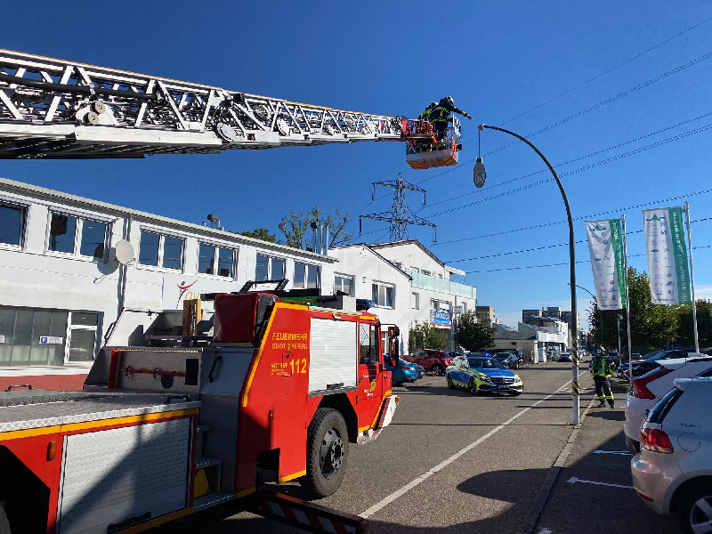 Fahrzeugaufgebot   Kommandowagen (KdoW)  Einsatzleitwagen (ELW 1)  Drehleiter (DLK 23/12)