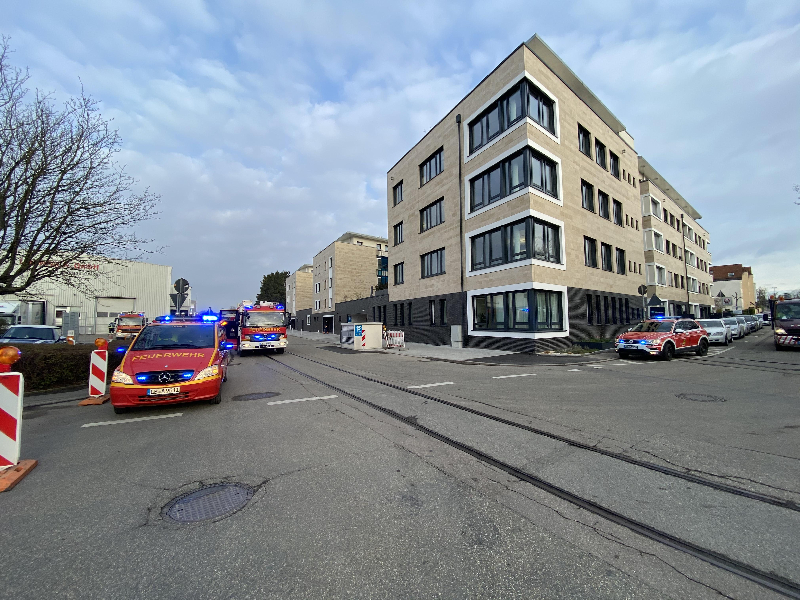 Fahrzeugaufgebot   Kommandowagen (KdoW)  Einsatzleitwagen (ELW 1)  Hilfeleistungslöschgruppenfahrzeug 1 (HLF 1)  Hilfeleistungslöschgruppenfahrzeug 2 (HLF 2)  Drehleiter (DLK 23/12)  Anhänger mit Sonderlöschmittel  Gerätewagen Logistik (GW-L 1) (a.D.)