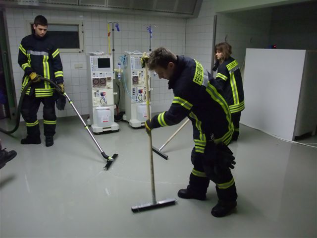 Am Freitag wurde die Feuerwehr Asperg zum Justizvollzugskrankenhaus Hohenasperg alarmiert. Aufgrund eines technischen Defekts kam es in der Dialysestation des Justizvollzugskrankenhauses zu einem Wasserschaden. Die Dialysestation stand auf eine Fläche von rund 20 Quadratmeter 7cm unter Wasser. Das ausgelaufene Wasser wurde durch die Einsatzkräfte der Feuerwehr Asperg mittels Wassersauger aufgenommen.