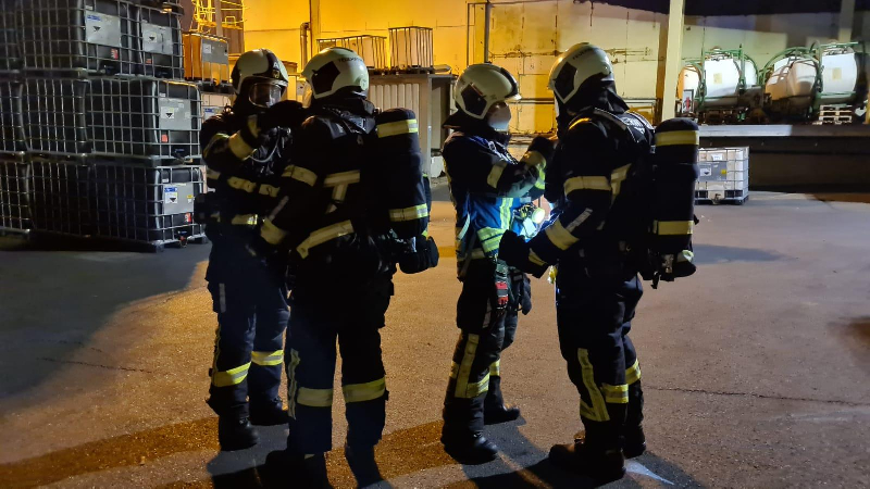 Fahrzeugaufgebot   Kommandowagen (KdoW)  Einsatzleitwagen (ELW 1)  Hilfeleistungslöschgruppenfahrzeug 1 (HLF 1)  Gerätewagen Gefahrgut (GW-G)