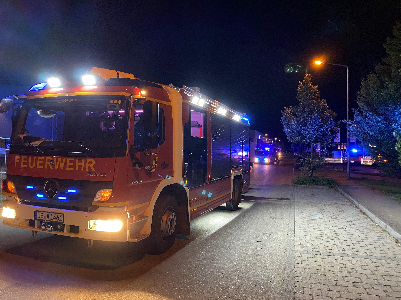 Fahrzeugaufgebot   Kommandowagen (KdoW)  Einsatzleitwagen (ELW 1)  Hilfeleistungslöschgruppenfahrzeug 1 (HLF 1)  Hilfeleistungslöschgruppenfahrzeug 2 (HLF 2)  Drehleiter (DLK 23/12)  Anhänger mit Sonderlöschmittel  Gerätewagen Logistik (GW-L 1) (a.D.)
