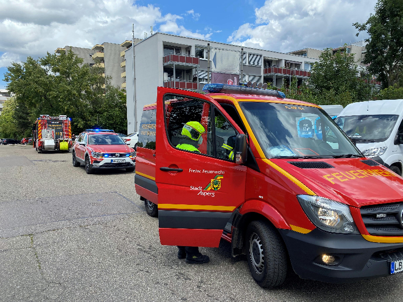 Fahrzeugaufgebot   Kommandowagen (KdoW)  Einsatzleitwagen (ELW 1)  Hilfeleistungslöschgruppenfahrzeug 1 (HLF 1)