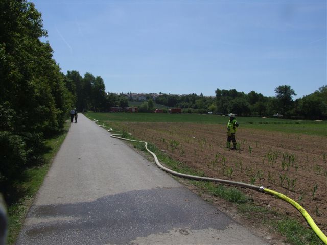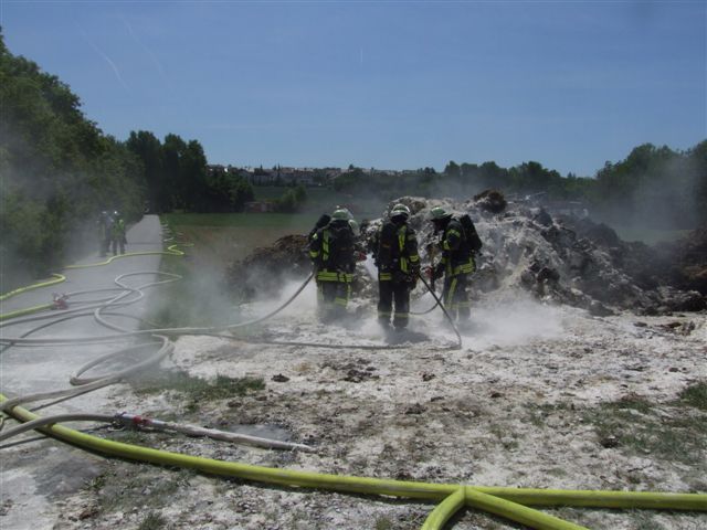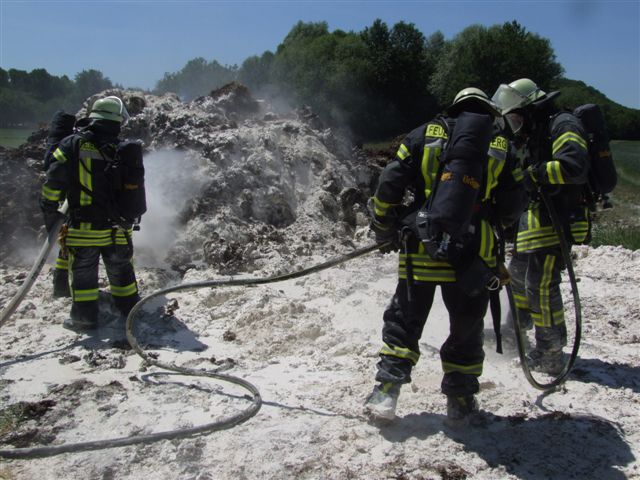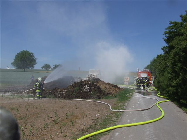 Am Montag wurde die Feuerwehr Asperg in die Altachstraße alarmiert. Eine Polizeistreife meldete einen brennenden Komposthaufen. Beim Eintreffen der Feuerwehr Asperg an der Einsatzstelle stellte sich heraus, dass sich der Brandort auf einer Verlängerung zum Gewann „Heckenwiesen“ befand. Auf eine Fläche von rund 200 Quadratmeter brannte ein rund zwei Meter hoch zusammengeschobener und mit Kalk vermischter Komposthaufen. Dichter Rauch zog in Richtung der unmittelbar angrenzenden Autobahn. Umgehend wurde mit der Brandbekämpfung begonnen. Hierbei kamen zwei C-Rohre und eine Löschlanze zum Einsatz. Als äußerst schwierig stellte sich die Wasserversorgung zur Einsatzstelle heraus. Von der Feuerwehr Ludwigsburg wurde daher das Tanklöschfahrzeug 20/40 nachalarmiert. Parallel wurde eine Wasserversorgung über eine Wegstrecke von rund 800 Meter aufgebaut. Aufgrund der Rauchentwicklung kamen während des Einsatzes insgesamt 6 Trupps unter schwerem Atemschutz zum Einsatz. Für abschließende Löschmaßnahmen wurde der Komposthaufen mittels Radlader auseinandergezogen. Eine Polizeistreife vor Ort leitete Ermittlungen zum Brandhergang ein.