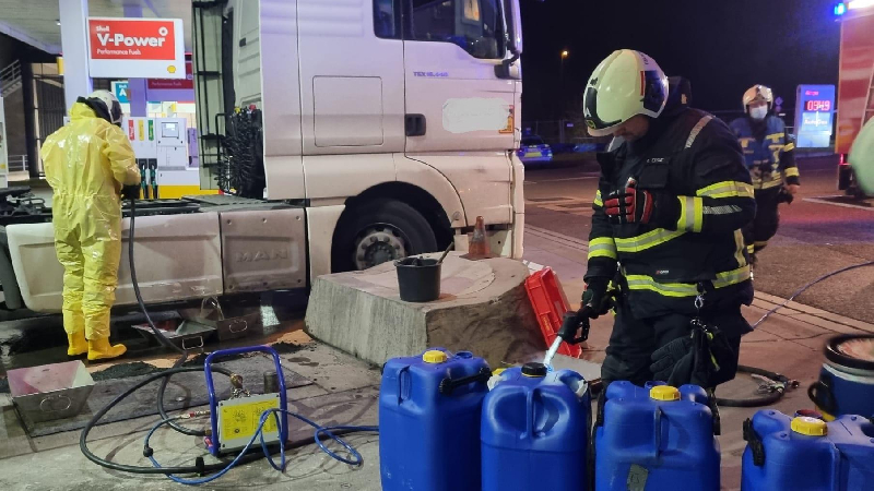 Fahrzeugaufgebot   Kommandowagen (KdoW)  Einsatzleitwagen (ELW 1)  Hilfeleistungslöschgruppenfahrzeug 2 (HLF 2)  Kleineinsatzfahrzeug (KEF)  Gerätewagen Gefahrgut (GW-G)  Gerätewagen Logistik (GW-L 1) (a.D.)