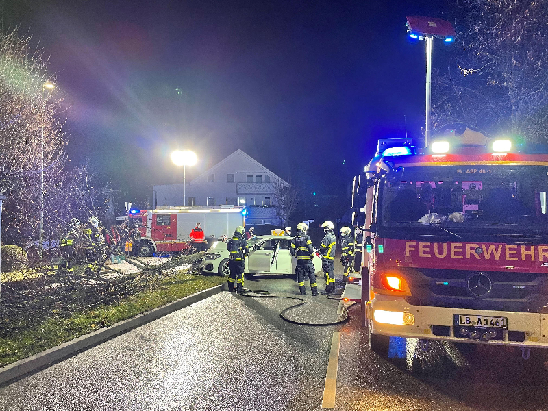 Fahrzeugaufgebot   Einsatzleitwagen (ELW 1)  Hilfeleistungslöschgruppenfahrzeug 1 (HLF 1)  Hilfeleistungslöschgruppenfahrzeug 2 (HLF 2)