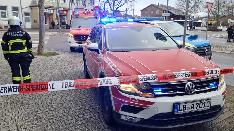 Fahrzeugaufgebot   Kommandowagen (KdoW)  Einsatzleitwagen (ELW 1)  Hilfeleistungslöschgruppenfahrzeug 2 (HLF 2)  Drehleiter (DLK 23/12)  Kleineinsatzfahrzeug (KEF)  Gerätewagen Gefahrgut (GW-G)