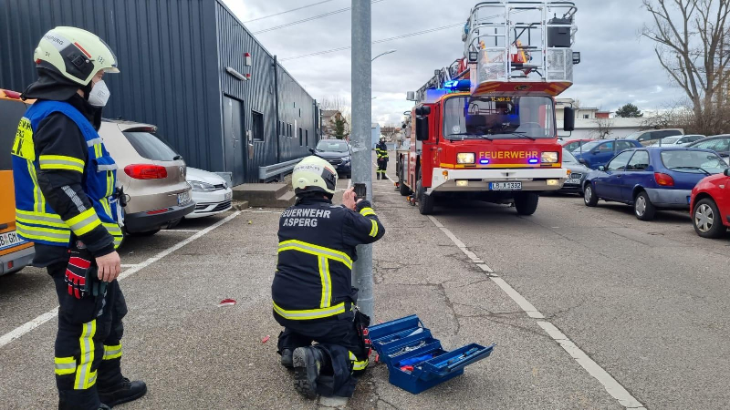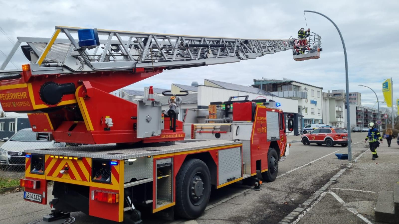 Fahrzeugaufgebot   Kommandowagen (KdoW)  Einsatzleitwagen (ELW 1)  Drehleiter (DLK 23/12)  Kleineinsatzfahrzeug (KEF)