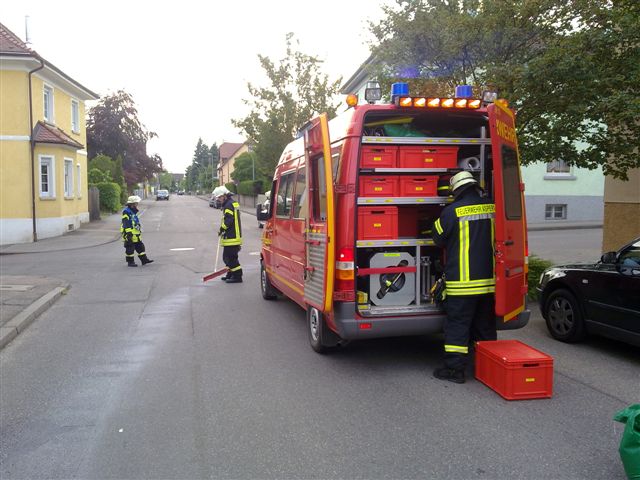 Am Freitag wurde die Feuerwehr Asperg zu einer Ölspur in die Lehenstraße alarmiert. Nach Erkundung durch den Einsatzleiter stellte sich heraus, dass sich die Ölspur über rund einen Kilometer über mehrere Straßen im Stadtgebiet erstreckte. Die Ölspur wurde mittels Ölbindemittel durch die Einsatzkräfte der Feuerwehr Asperg abgestreut. Zur Tiefenreinigung der Fahrbahn kam eine Spezialfirma zum Einsatz. Eine Polizeistreife vor Ort leitete Ermittlungen zur Verunreinigung der Fahrbahn ein.