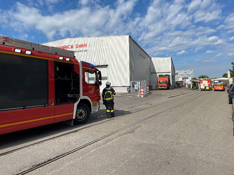 Fahrzeugaufgebot   Kommandowagen (KdoW)  Einsatzleitwagen (ELW 1)  Hilfeleistungslöschgruppenfahrzeug 1 (HLF 1)  Hilfeleistungslöschgruppenfahrzeug 2 (HLF 2)  Anhänger mit Sonderlöschmittel  Gerätewagen Logistik (GW-L 1) (a.D.)