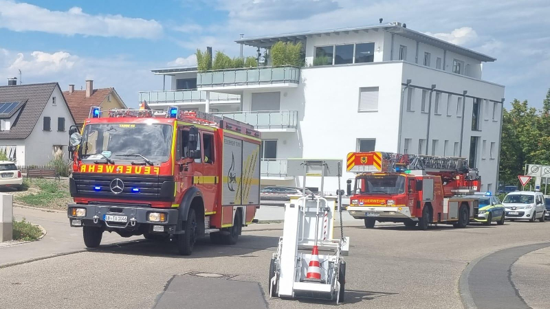 Fahrzeugaufgebot   Einsatzleitwagen (ELW 1)  Hilfeleistungslöschgruppenfahrzeug 1 (HLF 1)  Drehleiter (DLK 23/12)