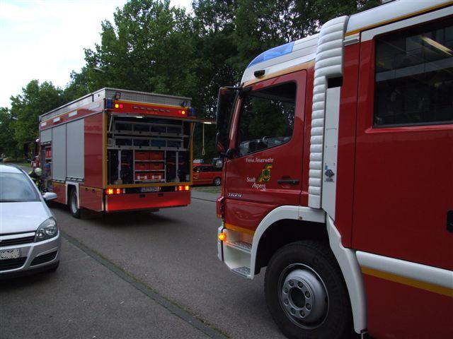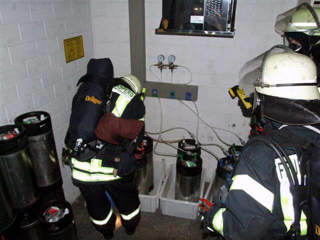 Am Montag wurde die Feuerwehr Asperg zu einer Firma in die Straße „Im Waldeck“ alarmiert. Der Hausmeister der Firma meldete über Notruf 112, dass die Kohlenstoffdioxidalarmanlage im Keller der Firmenkantine ausgelöst hat. Die Kellerräume seien nicht mehr begehbar. Nach dem Eintreffen der ersten Einsatzkräfte an der Einsatzstelle bestätigte sich die Meldung. Erste Messungen in den Kellerräumen ergaben erhöhte Kohlenstoffdioxidwerte. Diese Messungen wurden von einem Trupp unter schwerem Atemschutz durchgeführt. Ein weiterer Atemschutztrupp brachte einen Hochleistungslüfter in Stellung. Weitere Erkundungen ergaben, dass es zu einem Kohlenstoffdioxidaustritt an der Getränkezapfanlage zur Firmenkantine gekommen war. Durch die Feuerwehr wurden vorsorglich fünf 6kg Kohlenstoffdioxidflaschen von der Anlage demontiert und ins Freie gebracht. Mittels Leckagespray wurden diese auf eine eventuelle Undichtigkeit geprüft. Es konnte keine Undichtigkeit festgestellt werden. Vermutlich kam es im Bereich der fest verbauten Kohlenstoffdioxidleitungen zur Kantinenzapfanlage zu einem Gasaustritt. Die Kellerräume wurden durch die Feuerwehr belüftet. Abschließende Messungen blieben ohne Ergebnis. Die Getränkezapfanlage wurde außer Betrieb genommen und eine Wartungsfirma verständigt. Ebenfalls vor Ort war die Feuerwehr Ludwigsburg mit dem Gerätewagen Messtechnik und die Polizei mit einer Streife.