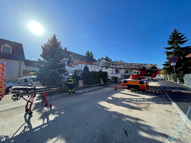 Fahrzeugaufgebot   Kommandowagen (KdoW)  Einsatzleitwagen (ELW 1)  Hilfeleistungslöschgruppenfahrzeug 1 (HLF 1)  Drehleiter (DLK 23/12)  Kleineinsatzfahrzeug (KEF)