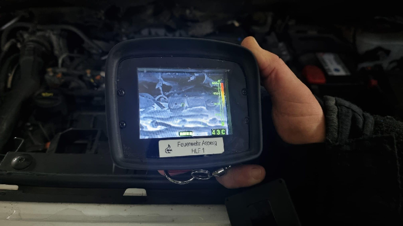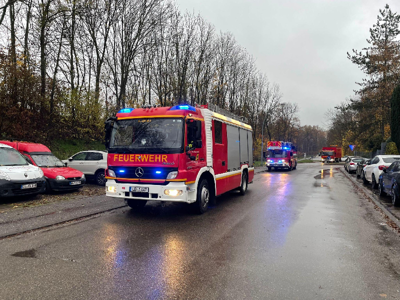 Fahrzeugaufgebot   Kommandowagen (KdoW)  Einsatzleitwagen (ELW 1)  Hilfeleistungslöschgruppenfahrzeug 1 (HLF 1)  Hilfeleistungslöschgruppenfahrzeug 2 (HLF 2)  Drehleiter (DLK 23/12)  Anhänger mit Sonderlöschmittel  Gerätewagen Logistik (GW-L 1) (a.D.)