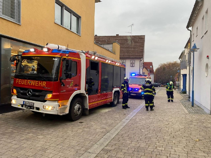 Fahrzeugaufgebot   Kommandowagen (KdoW)  Einsatzleitwagen (ELW 1)  Hilfeleistungslöschgruppenfahrzeug 1 (HLF 1)  Drehleiter (DLK 23/12)  Mannschaftstransportwagen 2 (MTW)