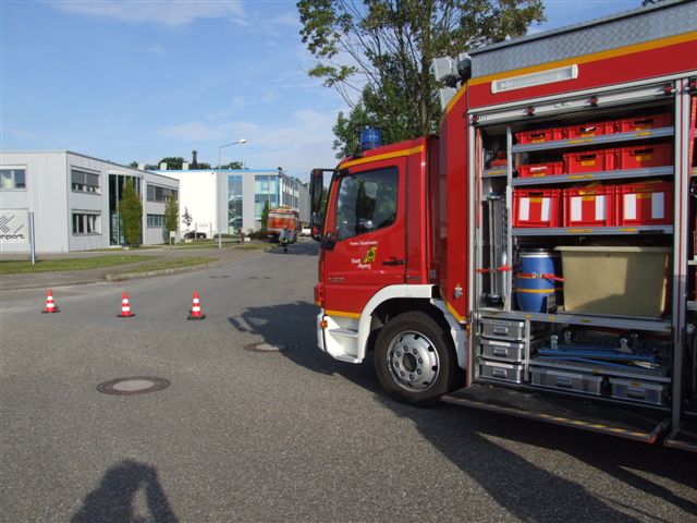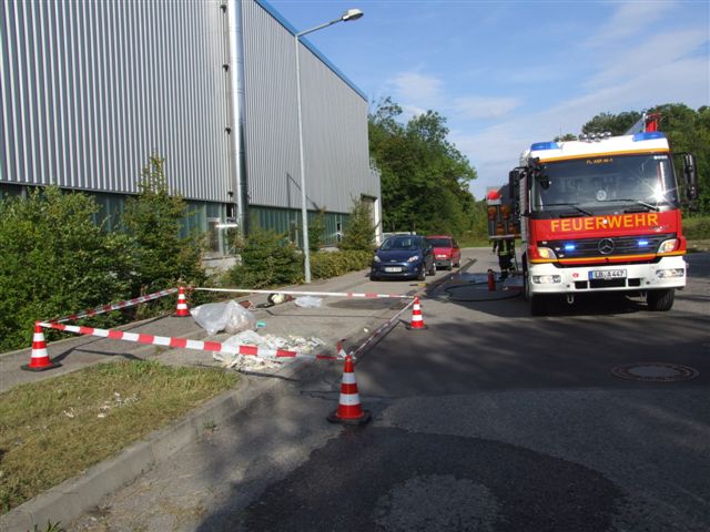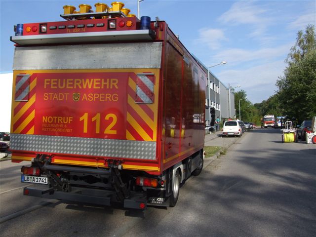 Am Dienstag wurde die Feuerwehr Asperg nach Auslösung der automatischen Brandmeldeanlage zu einer Firma für Oberflächenveredelung in die Siemensstraße alarmiert. Beim Erkunden durch den Einsatzleiter der Feuerwehr Asperg wurde eine starke Rauchentwicklung in der Produktionshalle festgestellt. Umgehend ging ein Trupp unter schwerem Atemschutz zur weiteren Erkundung mit mehreren Pulverlöschern in die Produktionshalle vor. Da in der Produktionshalle zahlreiche verschiedene chemische Flüssigkeiten zur Oberflächenveredelung benutzt werden, wurde parallel der fahrbare 250 kg Pulverlöschcontainer der Feuerwehr Asperg in Stellung gebracht. Das Feuer wurde im Obergeschoss der Produktionshalle lokalisiert. Hier brannten mit Natriumhydroxid gedrängte Reinigungstücher die sich in Auffangbehältern befanden. Eine Brandbekämpfung erfolgte mittels Löschpulver. Im Anschluss wurde der Brandschutt zum Ablöschen durch die Einsatzkräfte der Feuerwehr ins Freie gebracht. Hierbei kamen mehrer Trupps unter schwerem Atemschutz zum Einsatz. Eine umfangreiche Belüftung der Produktionshalle erfolgte über die in der Firma fest installierte Rauchabzugsanlage. Die Polizei leitete Ermittlungen zum Brandhergang ein. Ebenfalls vor Ort war der Rettungsdienst mit einem Fahrzeug.