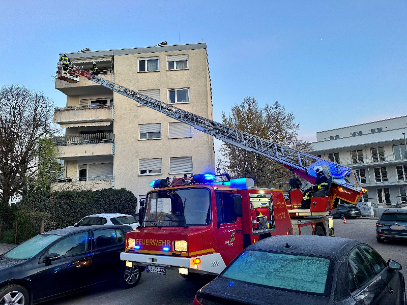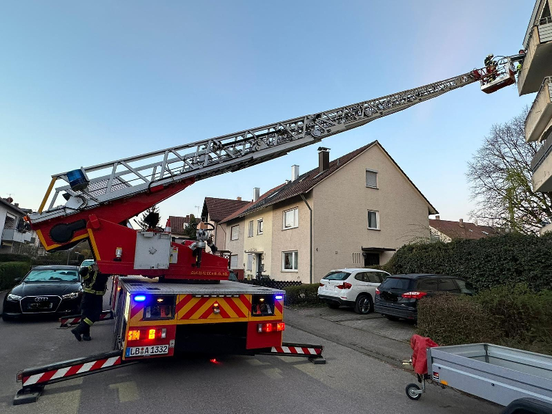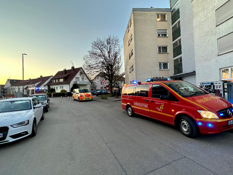 Fahrzeugaufgebot   Kommandowagen (KdoW)  Einsatzleitwagen (ELW 1)  Hilfeleistungslöschgruppenfahrzeug 1 (HLF 1)  Drehleiter (DLK 23/12)