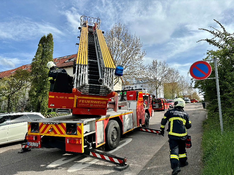 Fahrzeugaufgebot   Kommandowagen (KdoW)  Einsatzleitwagen (ELW 1)  Hilfeleistungslöschgruppenfahrzeug 1 (HLF 1)  Drehleiter (DLK 23/12)