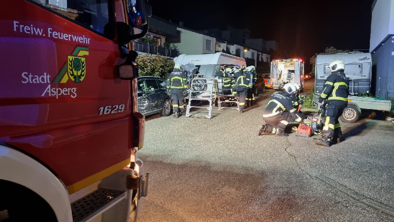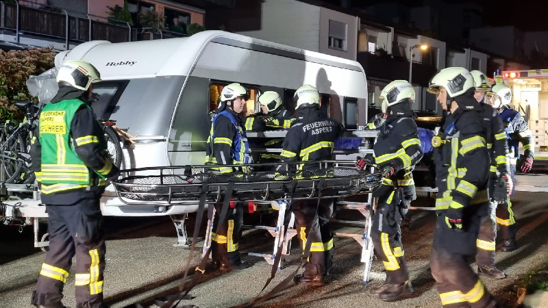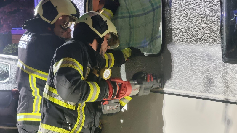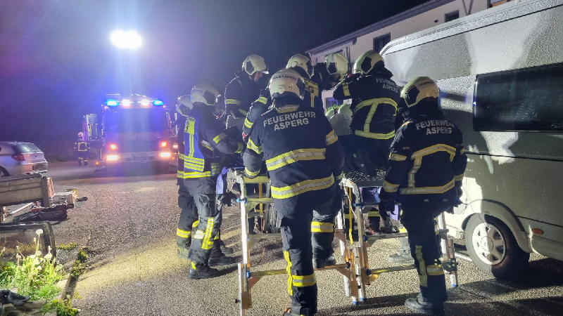 Fahrzeugaufgebot   Kommandowagen (KdoW)  Einsatzleitwagen (ELW 1)  Hilfeleistungslöschgruppenfahrzeug 1 (HLF 1)  Drehleiter (DLK 23/12)  Gerätewagen Gefahrgut (GW-G)