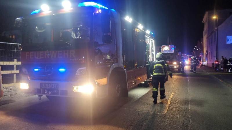 Fahrzeugaufgebot   Kommandowagen (KdoW)  Einsatzleitwagen (ELW 1)  Hilfeleistungslöschgruppenfahrzeug 1 (HLF 1)  Hilfeleistungslöschgruppenfahrzeug 2 (HLF 2)  Drehleiter (DLK 23/12)  Kleineinsatzfahrzeug (KEF)