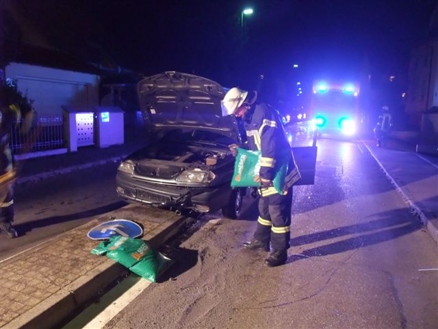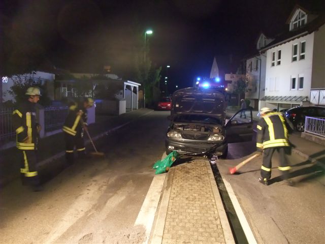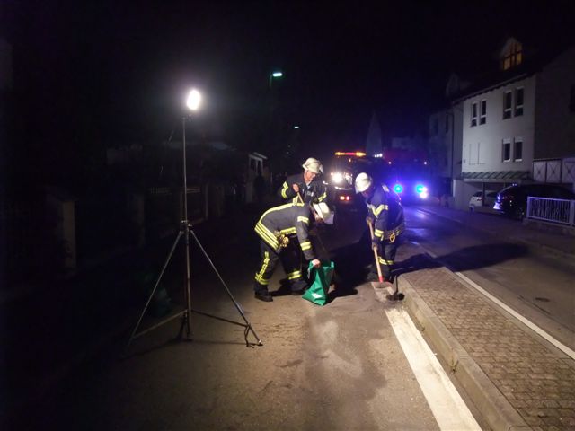 Am Donnerstagabend wurde die Feuerwehr Asperg zu einem Verkehrsunfall in die Lange Straße alarmiert. Aus bislang ungeklärter Ursache übersah ein Fahrer eines PKW eine Verkehrsinsel. Durch das auf der Verkehrsinsel stehende Verkehrsschild wurde der Unterboden des PKW aufgerissen und Betriebsmittel liefen aus. Da beim Eintreffen der Feuerwehr leichter Brandgeruch feststellbar war, wurde umgehend die Batterie des PKW abgeklemmt. Die ausgelaufenen Betriebsmittel wurden mittels Bindemittel durch die Einsatzkräfte der Feuerwehr Asperg abgestreut. Zur Unfallaufnahme wurde die Einsatzstelle weiträumig ausgeleuchtet. Eine Polizeistreife vor Ort leitete Ermittlungen zum Unfallhergang ein. Zur abschließenden Tiefenreinigung der Fahrbahn wurde eine Spezialfirma verständigt. Während des Einsatzes musste ein Teil der Lange Straße voll gesperrt werden.