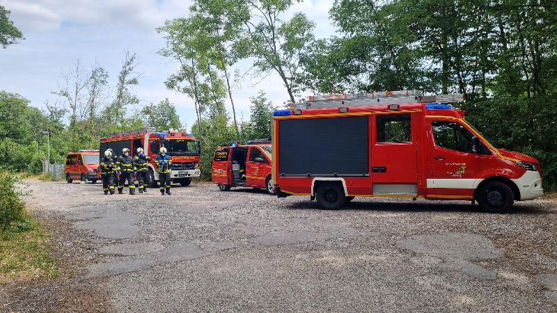 Fahrzeugaufgebot   Einsatzleitwagen (ELW 1)  Hilfeleistungslöschgruppenfahrzeug 1 (HLF 1)  Kleineinsatzfahrzeug (KEF)  Mannschaftstransportwagen 2 (MTW)