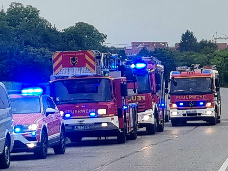 Fahrzeugaufgebot   Kommandowagen (KdoW)  Einsatzleitwagen (ELW 1)  Hilfeleistungslöschgruppenfahrzeug 1 (HLF 1)  Hilfeleistungslöschgruppenfahrzeug 2 (HLF 2)  Drehleiter (DLK 23/12)