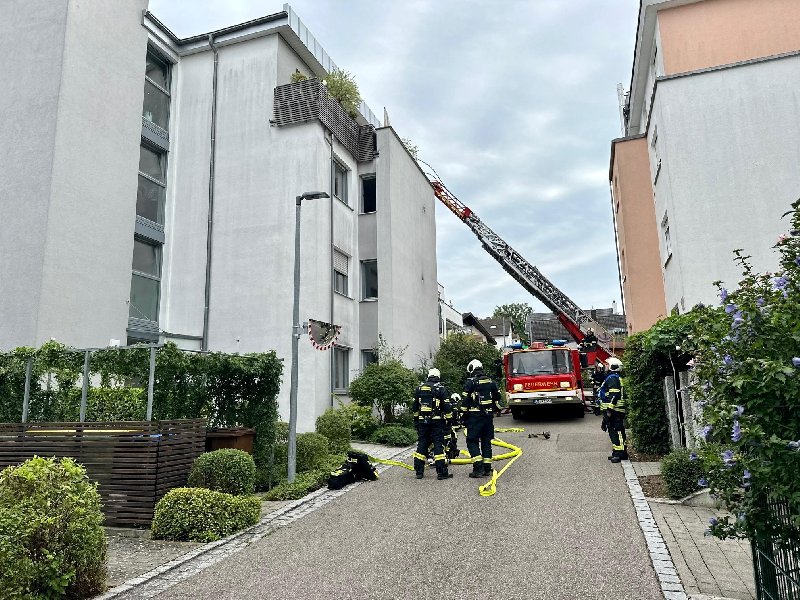 Fahrzeugaufgebot   Kommandowagen (KdoW)  Einsatzleitwagen (ELW 1)  Hilfeleistungslöschgruppenfahrzeug 1 (HLF 1)  Hilfeleistungslöschgruppenfahrzeug 2 (HLF 2)  Hilfeleistungslöschgruppenfahrzeug 3 (HLF 3)  Drehleiter (DLK 23/12)  Kleineinsatzfahrzeug (KEF)