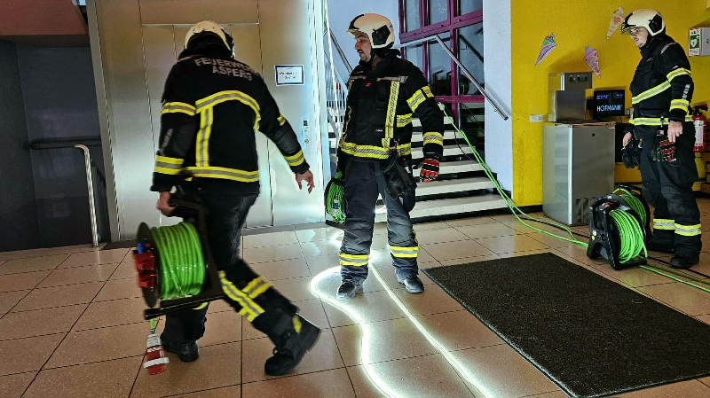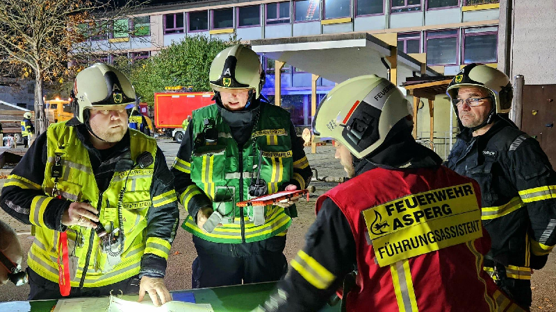 Alarmübung in Zusammenarbeit mit Ortspolizeibehörde, städtischem Bauhof und kommunalem Krisenmanagement.
