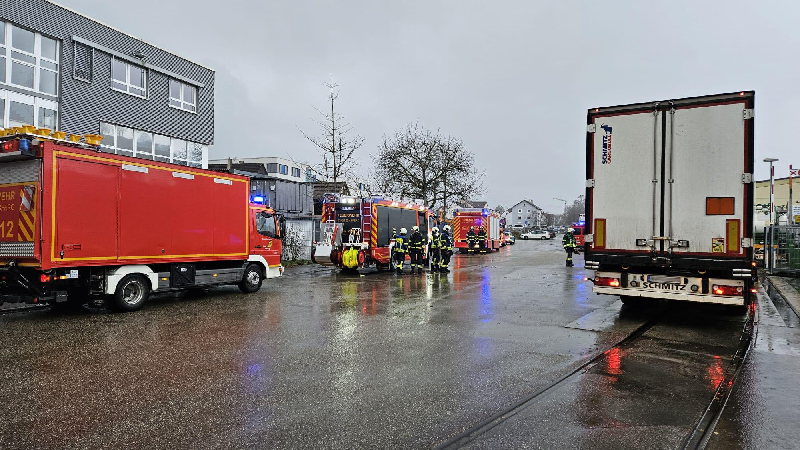 Fahrzeugaufgebot   Kommandowagen (KdoW)  Einsatzleitwagen (ELW 1)  Hilfeleistungslöschgruppenfahrzeug 1 (HLF 1)  Gerätewagen Gefahrgut (GW-G)  Mannschaftstransportwagen 2 (MTW)  Anhänger mit Sonderlöschmittel  Gerätewagen Logistik (GW-L 1) (a.D.)