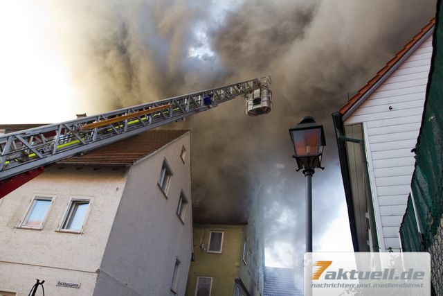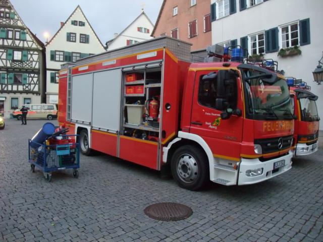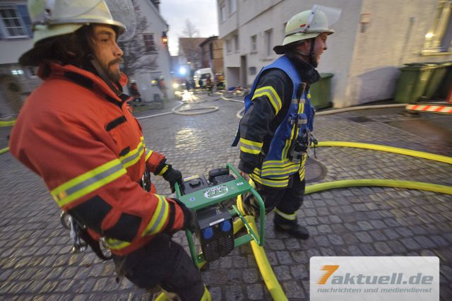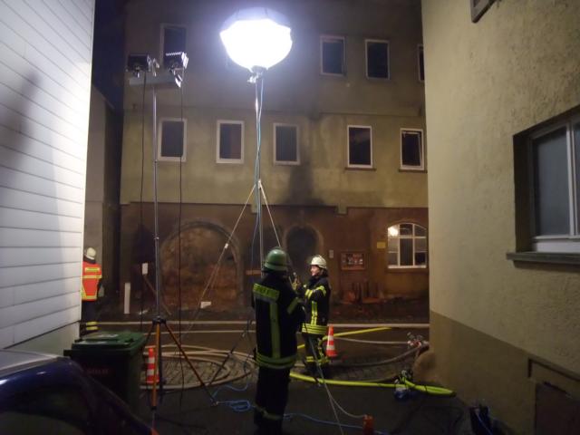 Am Samstag wurde die Feuerwehr Asperg im Rahmen der Überlandhilfe zu einem Gebäudebrand in die Markgröninger Altstadt alarmiert. In der "Finsteren Gasse" brannte seit rund zwei Stunden ein Mehrfamilienhaus. Das Feuer erstreckte sich über die kompletten Stockwerke. Ebenfalls stand der Dachstuhl des Gebäudes im Vollbrand. Nur aufgrund eines massiven Löscheinsatzes der Feuerwehr gelang es eine Brandausbreitung auf weitere Gebäude in der eng bebauten Altstadt zu verhindern. Die Feuerwehr Asperg wurde durch die Einsatzleitung angefordert um die Einsatzstelle auszuleuchten. Hier kamen unter anderem zwei bei der Feuerwehr Asperg vorgehaltene "Powermoon Twinlight" zum Einsatz. Zudem wurden mehrere mobile Stromaggregate die ebenfalls von der Feuerwehr Asperg vorgehalten werden zur Einsatzstelle verbracht. Ein Einsatzende für die Kräfte der Feuerwehr Markgröningen ist aufgrund der akuten Einsturzgefahr des Gebäudes auch am Sonntagmorgen noch nicht absehbar gewesen.