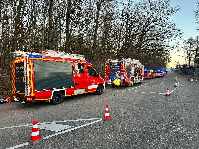 Fahrzeugaufgebot   Kommandowagen (KdoW)  Einsatzleitwagen (ELW 1)  Hilfeleistungslöschgruppenfahrzeug 1 (HLF 1)  Drehleiter (DLK 23/12)  Kleineinsatzfahrzeug (KEF)  Mannschaftstransportwagen 1 (MTW)
