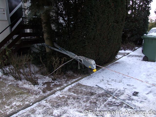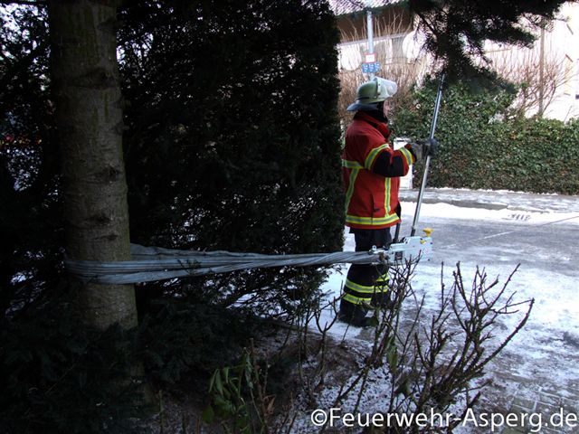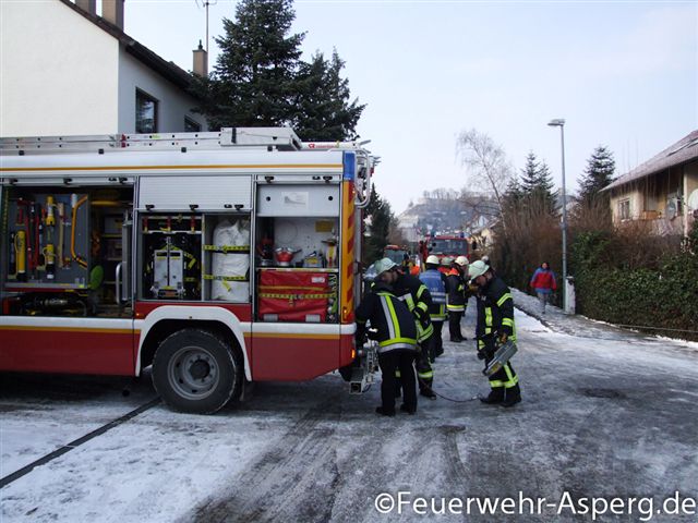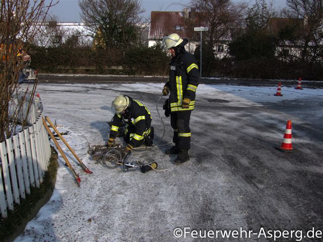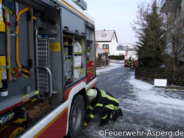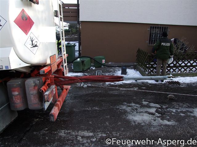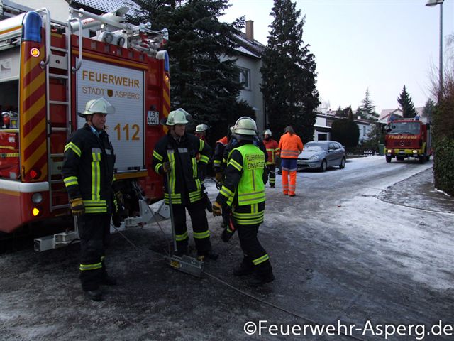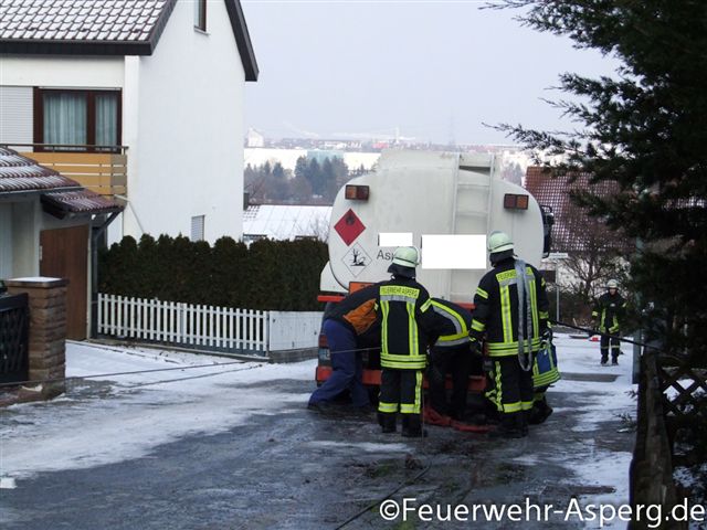 Am Mittwoch wurde die Feuerwehr Asperg mit dem Einsatzstichwort „droht Tankwagen umzustürzen“ in die Wunnensteinstraße alarmiert. Nach Erkundung durch den Einsatzleiter bestätigte sich diese Meldung. Ein Heizöllastwagen geriet während des Entladevorgangs trotz angezogener Feststellbremse und unter dem Reifen untergeschobenem Keil, auf der abschüssigen vereisten Fahrbahn, ins Rutschen. Lediglich am Befüllschlauch hielt der tonnenschwere LKW. Zudem geriet der Tankwagen immer mehr in Schräglage und drohte umzustürzen. Durch den Einsatzleiter der Feuerwehr Asperg wurde sofort ein Rüstwagen der Feuerwehr Markgröningen und ein zweiter Rüstwagen der Feuerwehr Ludwigsburg zur Überlandhilfe angefordert. Umgehend wurden erste Sicherungsmaßnahmen durch die Einsatzkräfte der Feuerwehr Asperg eingeleitet. Paralell wurden die Kanaleinläufe mittels Rohrdichtkissen im unmittelbaren Gefahrenbereich verschlossen. Mittels Greifzug wurde das Fahrzeug stabilisiert und konnte letztendlich aus dem Gefahrenbereich geborgen werden. Ein größeres drohendes Unglück konnte somit aufgrund des Einsatzes der Feuerwehr verhindert werden. Während des Einsatzes vor Ort war ebenfalls die Polizei mit zwei Streifen und der Rettungsdienst mit einem Fahrzeug. Vort Ort war auch der städtische Bauhof zum Abstreuen der vereisten Fahrbahn.