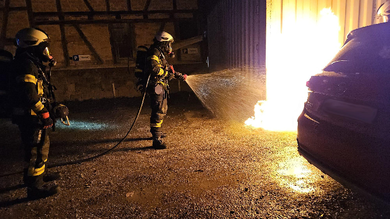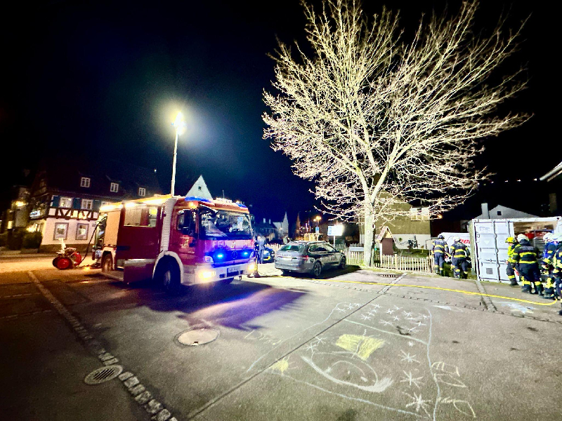 Fahrzeugaufgebot   Kommandowagen (KdoW)  Einsatzleitwagen (ELW 1)  Hilfeleistungslöschgruppenfahrzeug 1 (HLF 1)  Hilfeleistungslöschgruppenfahrzeug 2 (HLF 2)