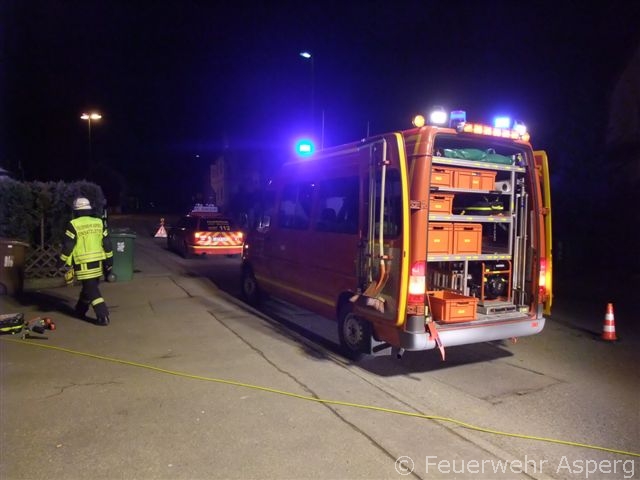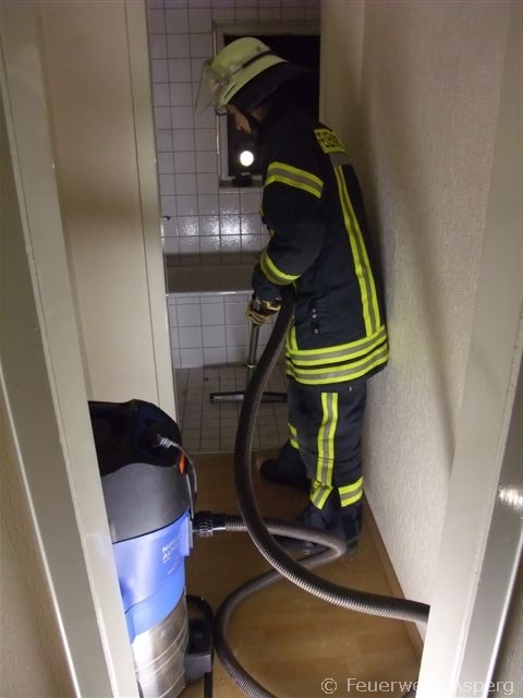 Am Dienstag meldeten Bewohner einer Erdgeschosswohnung über Notruf 112 Wassereinbruch durch die Decke ihrer Wohnung. Die darüberliegende Wohnung war unbewohnt. Die Feuerwehr Asperg wurde zur Notfalltüröffnung alarmiert. Nach Erkundung durch den Einsatzleiter bestätigte sich die Meldung. Umgehend wurden die betroffenen Wohnungen stromlos geschaltet und die Wohnungstüre zu der betroffenen Wohnung mittels Spezialwerkzeug durch die Feuerwehr Asperg geöffnet. Parallel wurde zudem die Wasserzuleitung abgestellt. In der leerstehenden Wohnung konnte ein Wasserrohrbruch in der Zwischendecke im Bereich der Sanitärräume lokalisiert werden. Das bereits ausgelaufene Wasser wurde mit einem Wassersauger aufgenommen. Auch im Heizraum im Keller musste bereits durch die Decken gesickertes Wasser mit einem Wassersauger aufgenommen werden. Abschließend wurde die Einsatzstelle an eine Polizeistreife übergeben.
